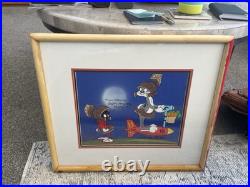 Super Rare limited edition Hand Painted, Hand Inked Animation Cel. Bugs and Marvin: Duck Dodgers. Does not come with a COA but there is no doubt it is authentic, original framing sticker is on back. Please note you will want to reframe as it is so old that the plastic on the original frame has come off.