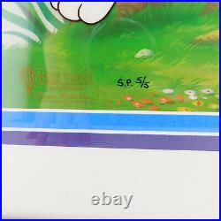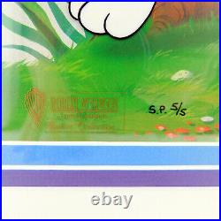Cel size 11 3/4" x 9 3/4". McKimson created characters like Foghorn Leghorn and the Tasmanian Devil, as well as directing every Hippety Hopper/Sylvester pairing. He also created Speedy Gonzales for the 1953 short Cat-Tails for Two and directed many others periodically (along with Freleng and other directors) for the remainder of his theatrical career.