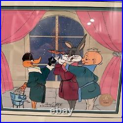 Chuck Jones Signed Hand Painted Animated Cel CHEERS (Daffy, Bugs, Elmer) 268