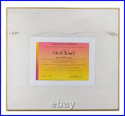 A highly prized and cream of the crop piece you will rarely ever see. Includes certificate of authenticity from Chuck Jones. Framed size 22" x 19". Image size 12" x 10 1/2". Designed and signed by master animator and legend Charles Jones in 1975!