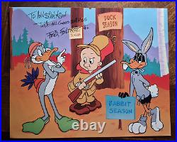 11.5 x 9.25 calendar page with Bugs Bunny, Elmer Fudd and Daffy Duck signed and inscribed by animator Friz Freleng.