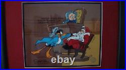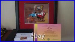 This is a beautiful and Funny Hand Painted Sericel by the famous Chuck Jones and Warner Brothers. It features both Daffy Duck and Porky Pig, along with Santa Claus. This is a limited edition, 497/500, hand painted, signed piece of art By creator Chuck Jones. It comes with all the paper-work to support the edition and rarity.