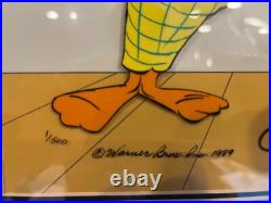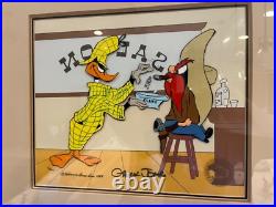 Here's a rare opportunity to own a #1 in a series of 500. Classic Daffy and Yosemite Sam. On my wall for 35 years in a non smoking environment. Gold metal frame in good condition. Wife says, it's time to let them go.