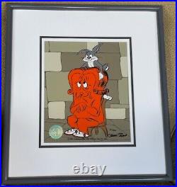 This limited edition cel features the beloved character Gossamer from the classic Bugs Bunny franchise. Illustrated by Chuck Jones, this original piece was produced in 1992 by Warner Bros.