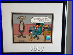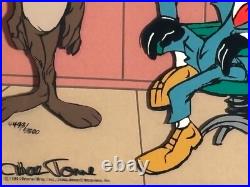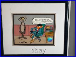 1991 Looney Tunes Signed Framed Cel. Daffy Duck & Wile E. Limited Edition #443/500 Signed by Chuck Jones. We encourage you to examine photos closely. They are of the exact item(s) you will receive.